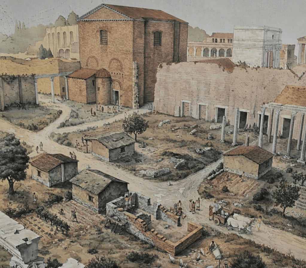 Traces of old Sirmium still survived in Rosamund’s day and might have struck her as particularly impressive in light of what the city had become. The walls of the hippodrome and of the imperial palace complex were still standing, even if not to their original height. These areas would have provided shelter and protection during times of danger. Some part of the thermal bath complex survived (though probably no longer in normal operation due to the destruction of the city’s aqueduct/plumbing systems.) Still, residents climbed onto the thermae roof to see the approach of an Avar delegation post-567.