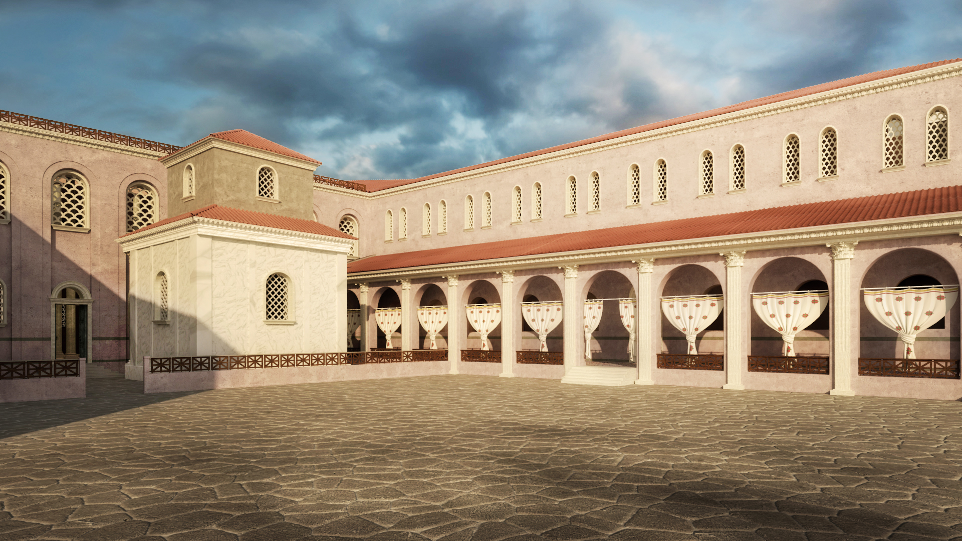 By the 5th-6th century, most of the imperial and public spaces of Sirmium had been ceded to the local population for their use. The open arena of the hippodrome, the ruined granaries, the tumbled peristyles of formerly luxurious urban villas, even the forum and the imperial palace complex were filled with primitive huts, workshops, and lean-tos. Open hearths were cut into mosaic floors. The cryptoportucus of the hippodrome became a dumping ground for rubbish and cleared rubble.